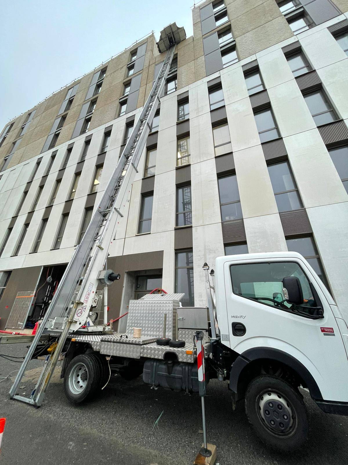 Nous pouvons intervenir jusqu'à une hauteur de 31 mètres, ce qui correspond à un bâtiment de 10 étages.